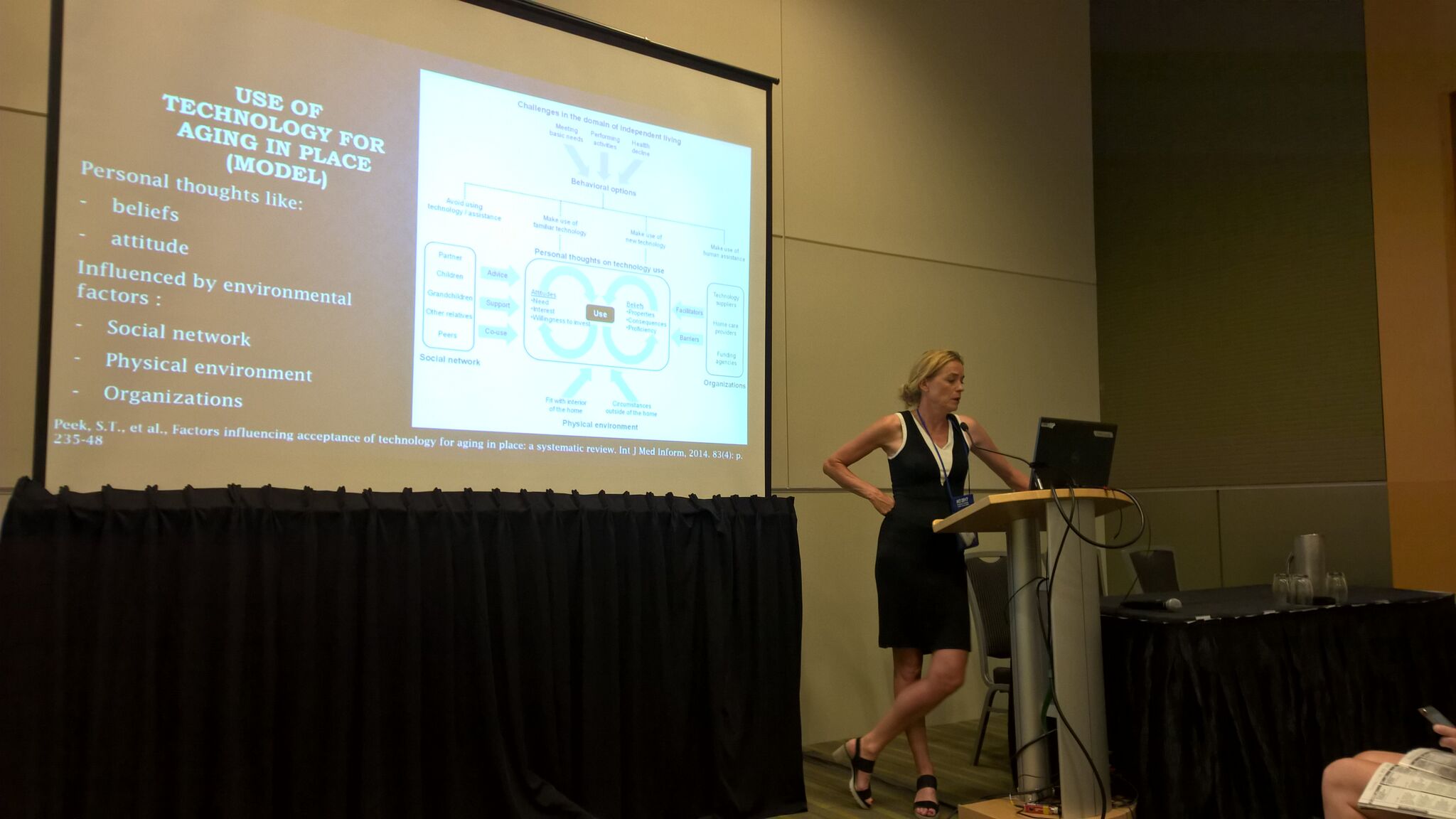 V okviru navedene sekcije je dr. Dolničar predstavila spoznanja aplikativnega raziskovalnega projekta, ki se nanašajo na sprejemanje naprav in storitev za e-oskrbo med starejšimi odraslimi in njihovimi neformalnimi oskrbovalci v Sloveniji. Projekt je bil financiran s strani Telekoma Slovenije, izveden pa s strani raziskovalcev CDI.