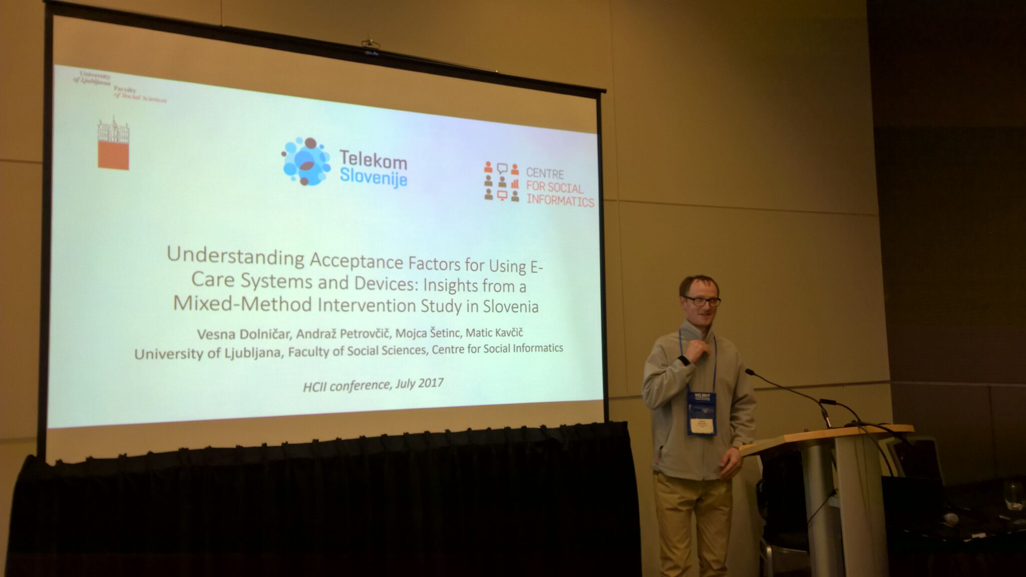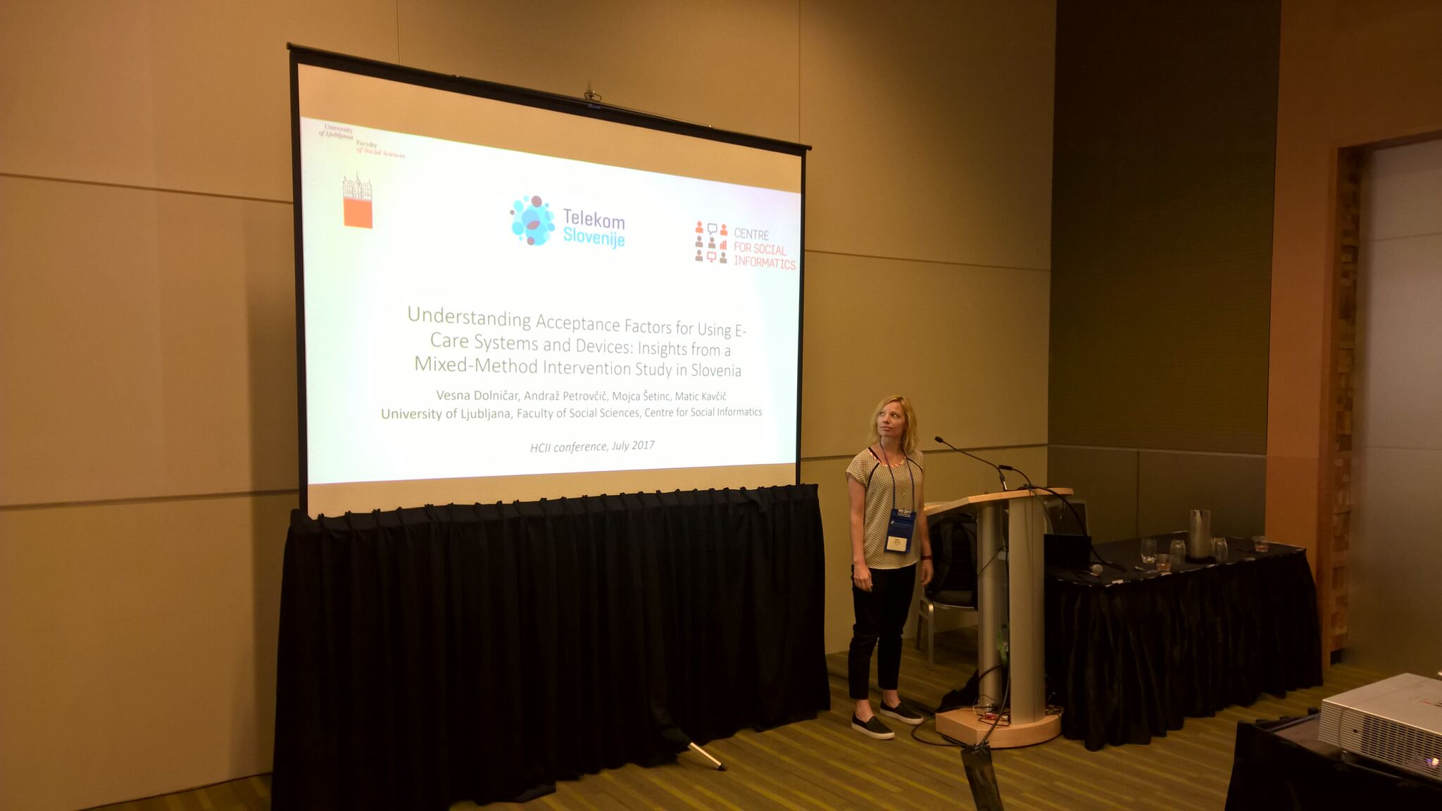 Dr. Petrovčič in dr. Dolničar sta v okviru HCII 2017 organizirala posebno sekcijo o družbenih vidikih e-zdravja, ki so se je udeležili sodelujoči iz šestih različnih držav, vključno z raziskovalci iz MIT Agelab (ZDA), Univerze Simon Fraser iz Kanade in Univerze Fontys iz Nizozemske.