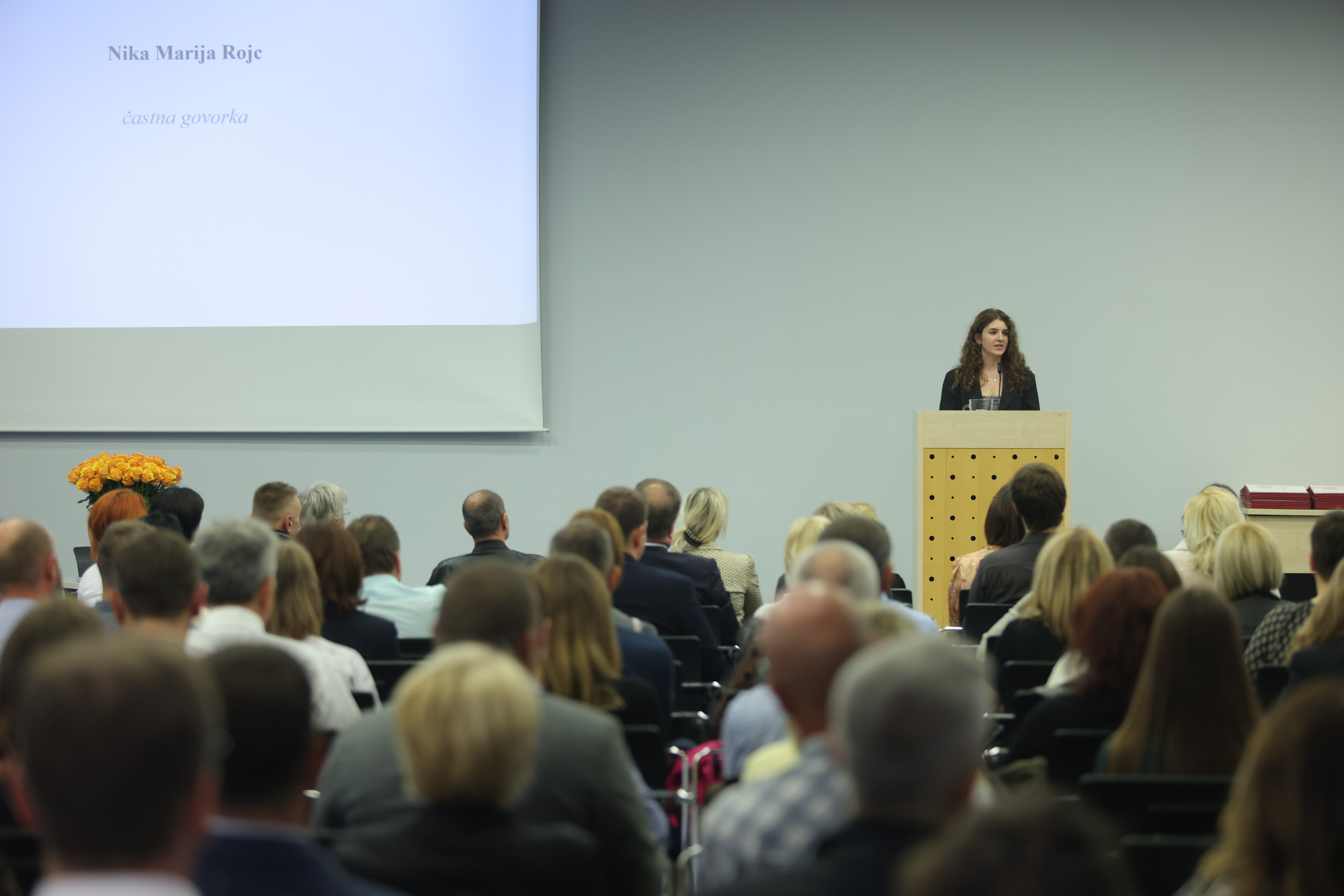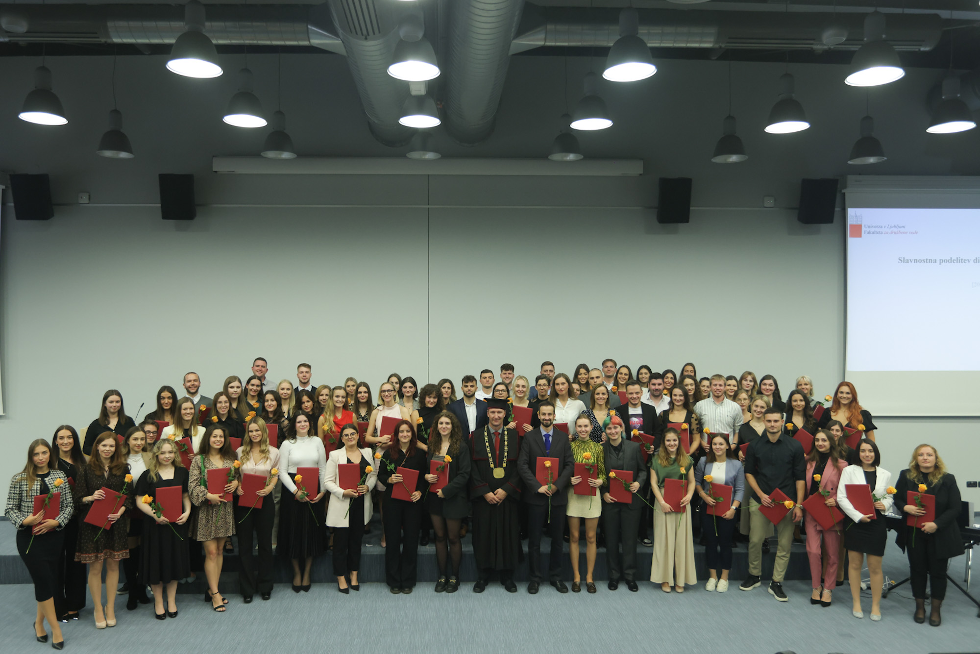 V petek, 20. 10. 2023, je na Fakulteti za družbene vede potekala podelitev diplomskih in magistrskih listin. Poleg uvodnega nagovora dekana dr. Iztoka Prezlja je študentke in študente nagovorila tudi diplomantka družboslovne informatike Nika Marija Rojc. Z njo so opravili krajši intervju na temo študija na FDV.